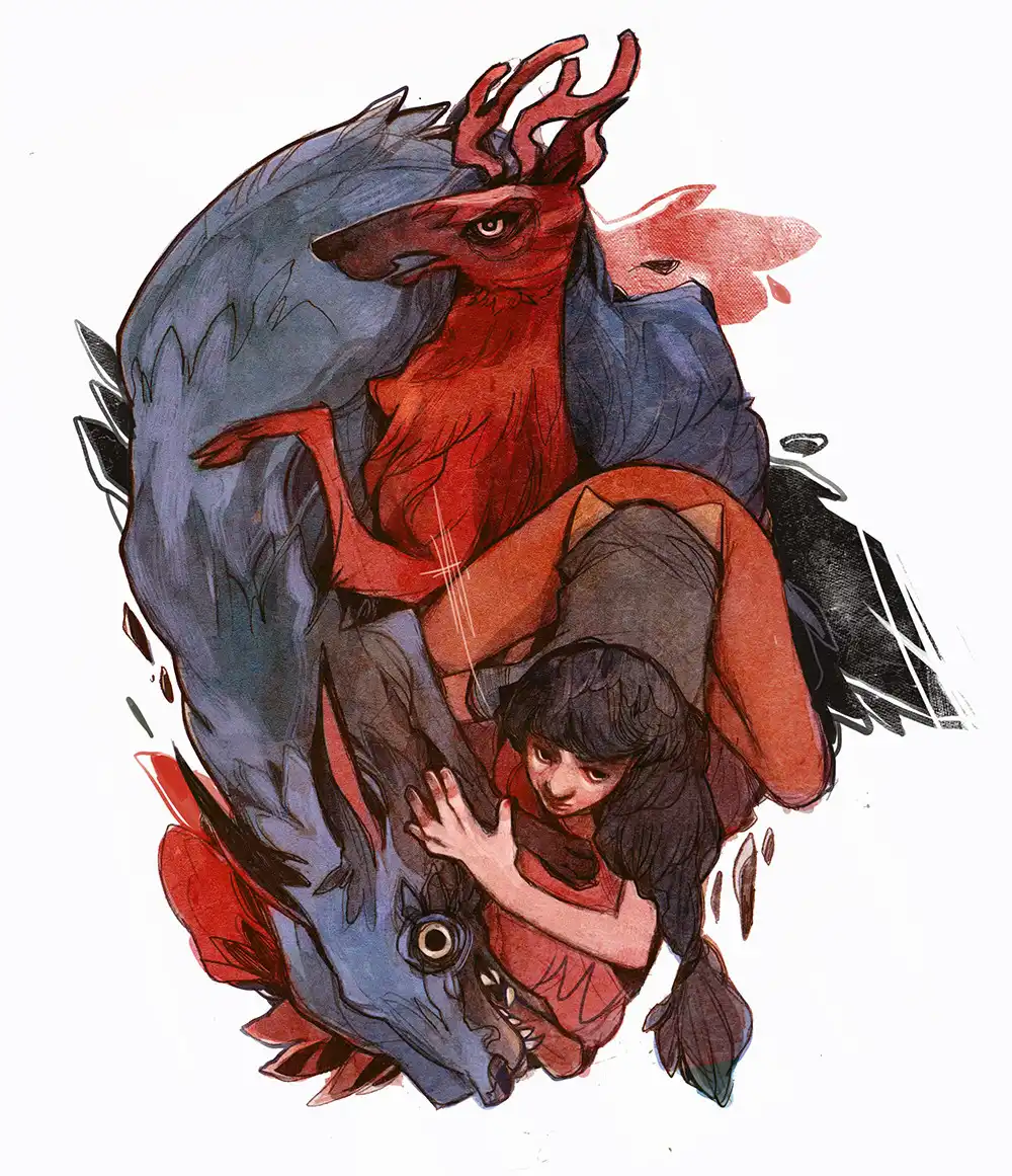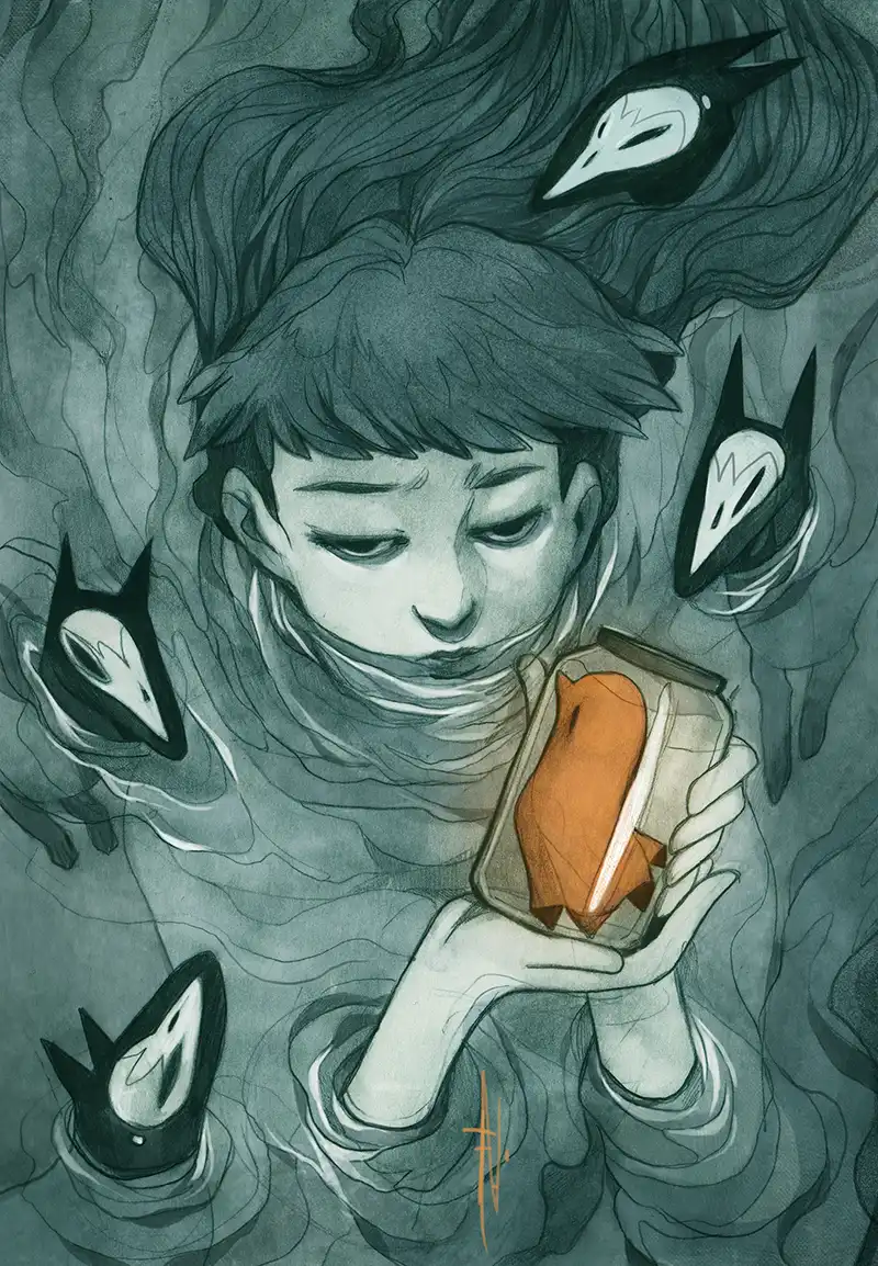 Das war das erste Mal, dass ich an einem Kinderbuch gearbeitet habe, obwohl ich schon lange das Interesse und den Wunsch dazu hatte. Bisher habe ich Novellen für Erwachsene, Kurzgeschichten, Gedichte und Comics illustriert – dieses Projekt lag also eindeutig außerhalb meiner Komfortzone. Beim Lesen des Textes ließ ich mich vor allem von der Emotion und dem Gefühl leiten, die er in mir auslöste – aber das gilt eigentlich für jeden Text oder jedes Skript, das ich illustriert habe.