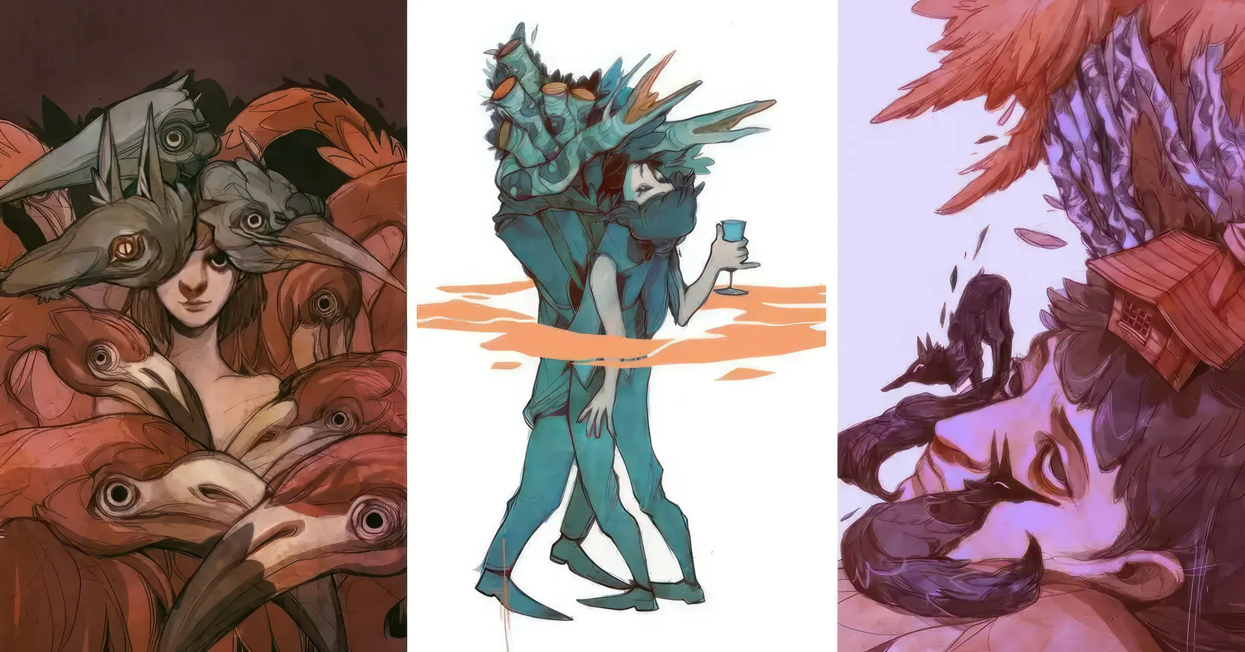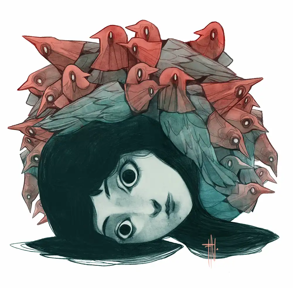 Ich glaube, dass man im Grunde alles selbst lernt, und ein großer Teil meiner Übung und meines zeichnerischen Analysierens war immer selbstinitiiert. In der Schule, als wir entsprechende Fächer und Spezialisierungen hatten, begeisterte ich mich stark für grafische Techniken, und nach dem Abschluss begann ich, mich für die Arbeit mit Farbe zu interessieren. Allmählich, durch diesen Prozess und in genau dieser Reihenfolge, tauchte ich vollständig in die Welt der Illustration ein.