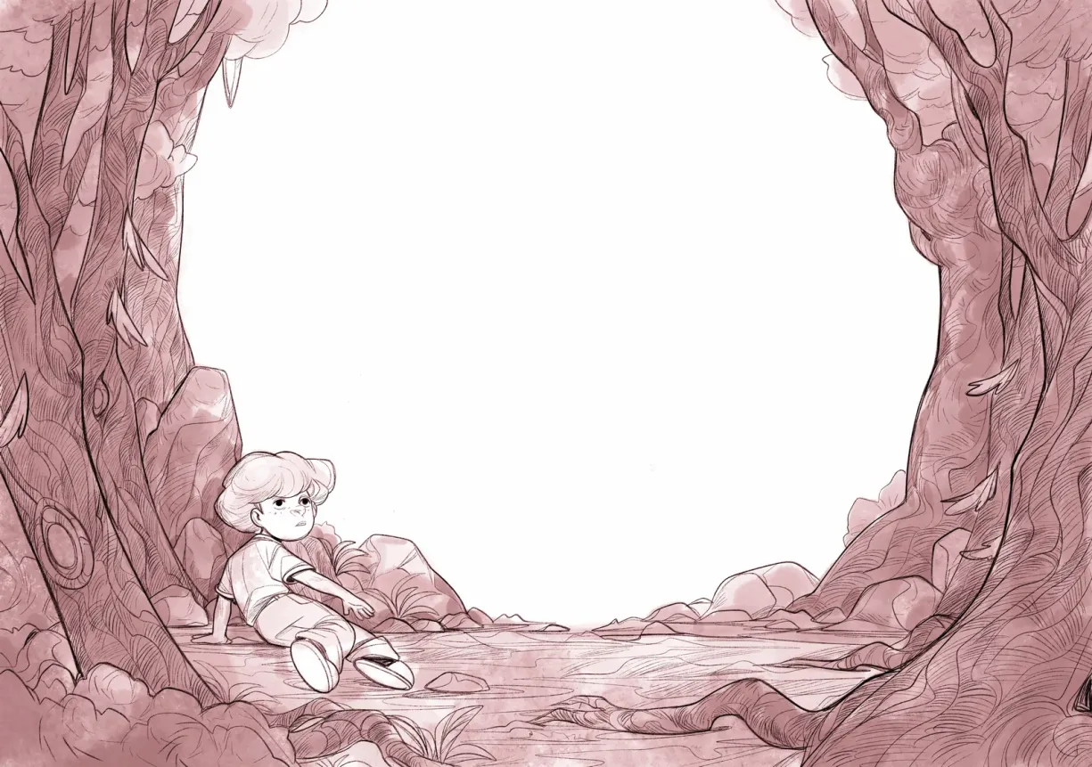 She was in a dense forest. The little clearing where she had landed was surrounded by thick, hollow trees, between which grew thorny bushes. The vegetation was so dense that, had the clearing not been lit by cheerful sunbeams, the place might have felt dark and unfriendly.