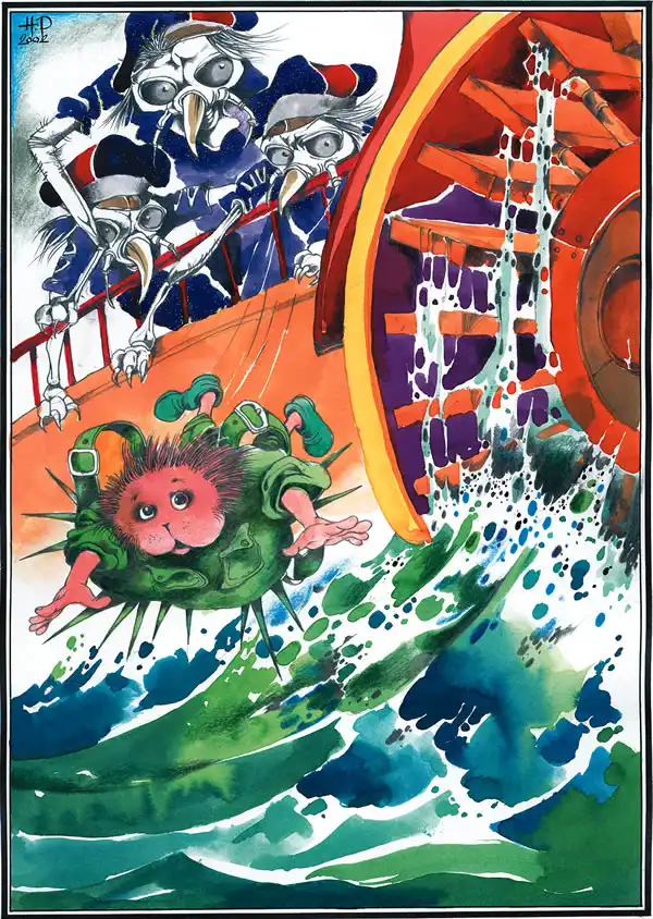 Ich werde nichts sagen. In dem Moment, in dem ein Schriftsteller beginnt zu erklären, was er geschaffen hat, ist er als Schöpfer verloren. Die Werke sprechen gut genug für sich selbst. In diesem Fall gibt es mindestens ein Dutzend Botschaften. Das Buch enthält mindestens drei Ebenen. Es gibt auch ein eigenes Terrain für Erwachsene, voller versteckter Zitate: Plato, Shakespeare, Hegel, Dostojewski, Unamuno … Sie sind eine Herausforderung für die Eltern, die ihren Kindern vorlesen – können sie sie entdecken? Außerdem gibt es einen ganzen Abschnitt, der mit Orwells „1984“ spielt, obwohl er vollständig für Kinder geschrieben ist: in angemessener Sprache, mit passender Bildwelt … Das ist die Magie – wobei ich nicht glaube, dass der Verdienst dafür bei mir liegt. Ich erzähle einfach eine hübsche, lustige Geschichte, in die sich auf irgendeine unerklärliche Weise bestimmte Botschaften eingeschlichen haben – Botschaften, die ich mich strikt weigere zu formulieren.